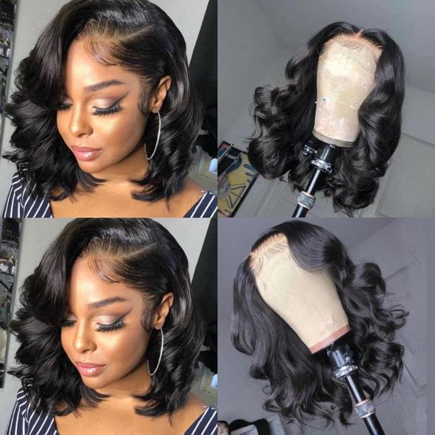 Short Brazilian Bob Wavy Wig 12 Inch Bob Wavy Lace Front Human Hair Wigs 4x4 Closure Bob Wig Walmart Com