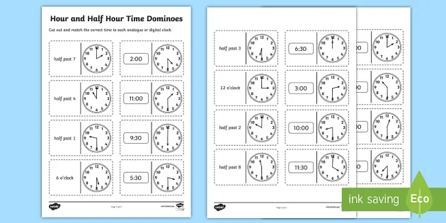 Year 1 Hour And Half Hour Time Dominoes Teacher Made